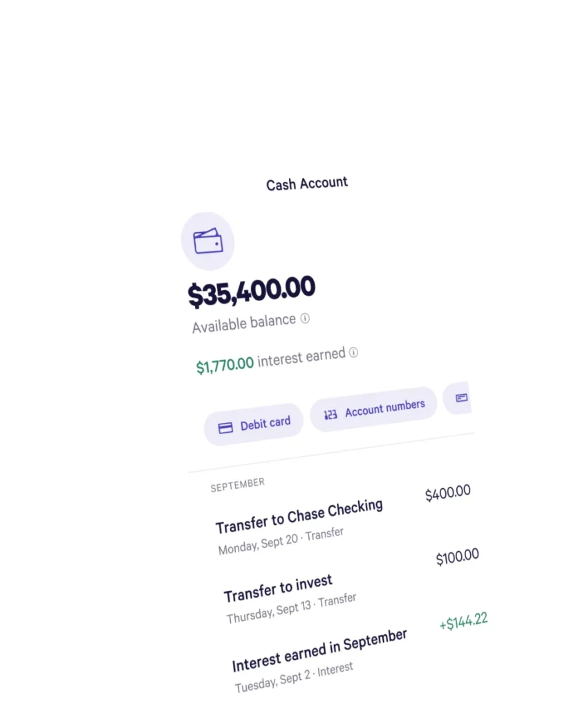 Move cash to a Wealthfront investing account in minutes, and get your long-term money working even harder, ASAP.